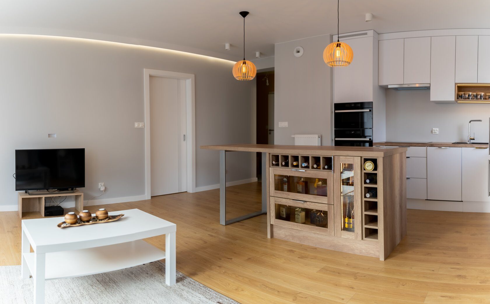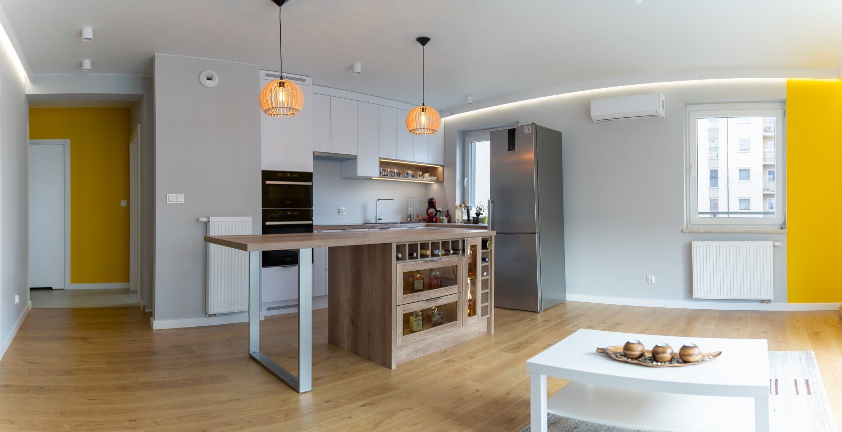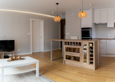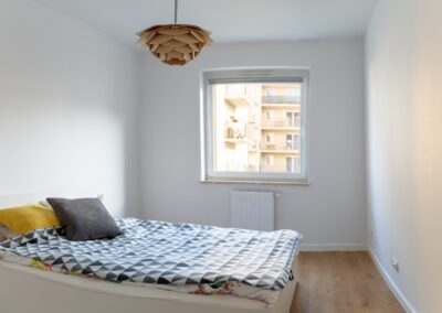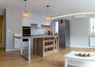 Mieszkanie na Jagodnie wykończyliśmy kompleksowo: odebraliśmy lokal w stanie deweloperskim i zrealizowaliśmy wszystkie prace remontowe z wyjątkiem montażu mebli – tą kwestią inwestorzy zajęli się we własnym zakresie.