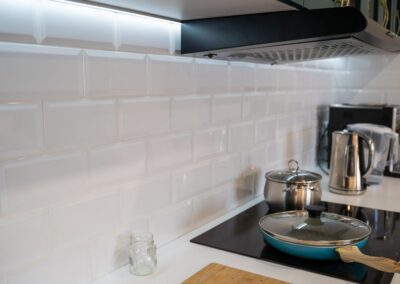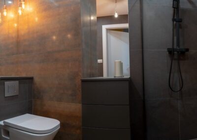 Na start wyzwanie rzuciła nam elektryka – zmieniliśmy i przenieśliśmy aż 80 punktów. W dużej części było to oświetlenie, którego potrzebowała stosunkowo ciemna, ale jednocześnie bardzo klimatyczna łazienka.
